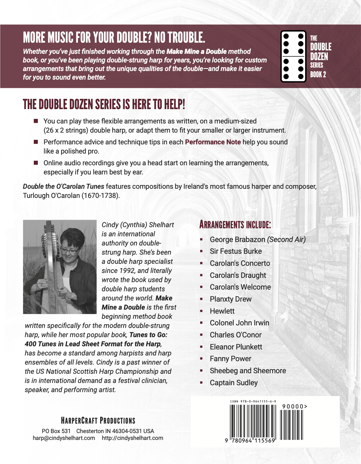 This listing is for the print edition of Double the O’Carolan Tunes and includes access to companion audio resources. Digital PDFs are sold separately on CindyShelhart.com.
